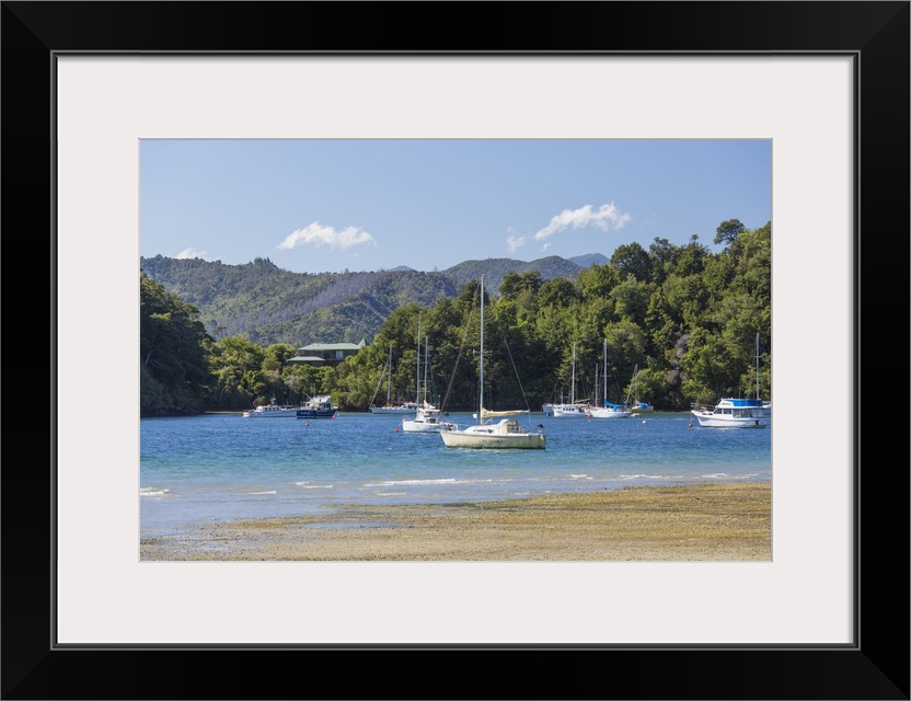 <p>Yachts moored in the sheltered harbour, Ngakuta Bay, near Picton, Marlborough, South Island, New Zealand, Pacific</p>
