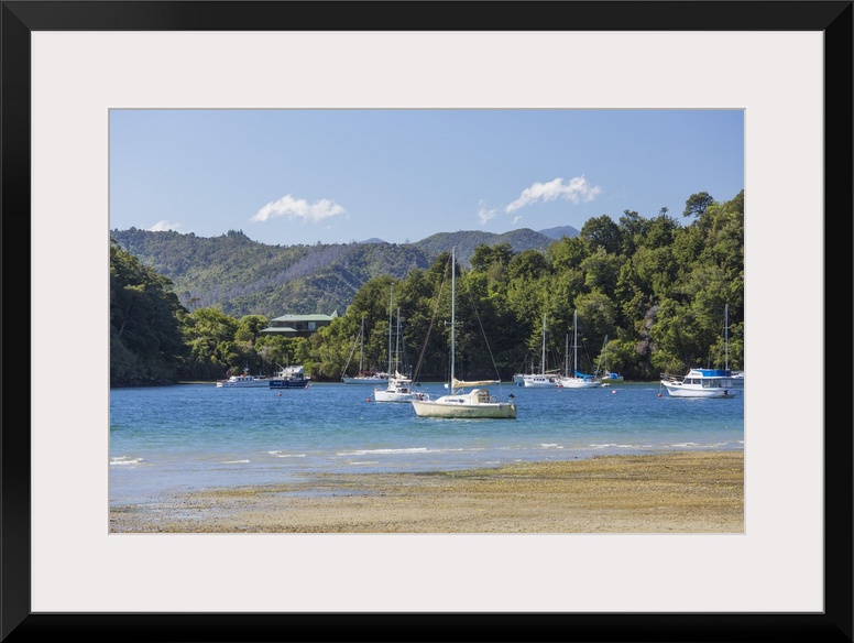 <p>Yachts moored in the sheltered harbour, Ngakuta Bay, near Picton, Marlborough, South Island, New Zealand, Pacific</p>