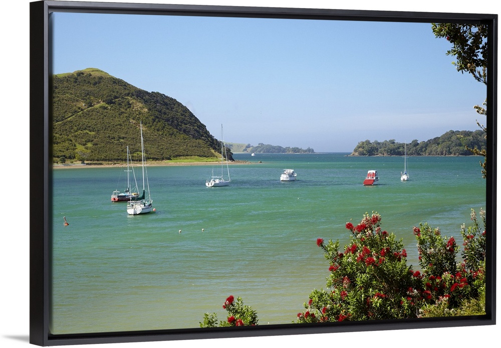 <p>Pohutukawa tree and yachts moored in Waipiro Bay, Parekura Bay, Bay of Islands, Northland, North Island, New Zealand</p>