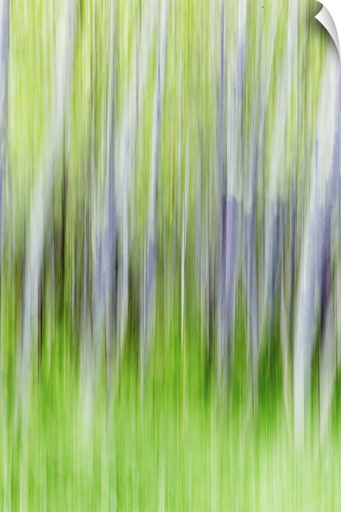 <p>Blurred photo of aspen trees in a forest, creating an abstract image.</p>