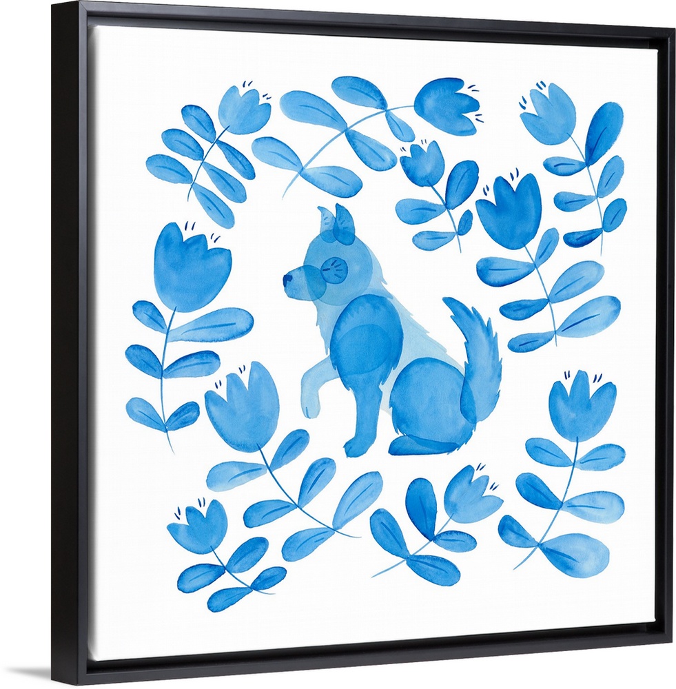 Art Blue Wall Art Decorative Art Florals Painting Watercolor Wildlife Dog