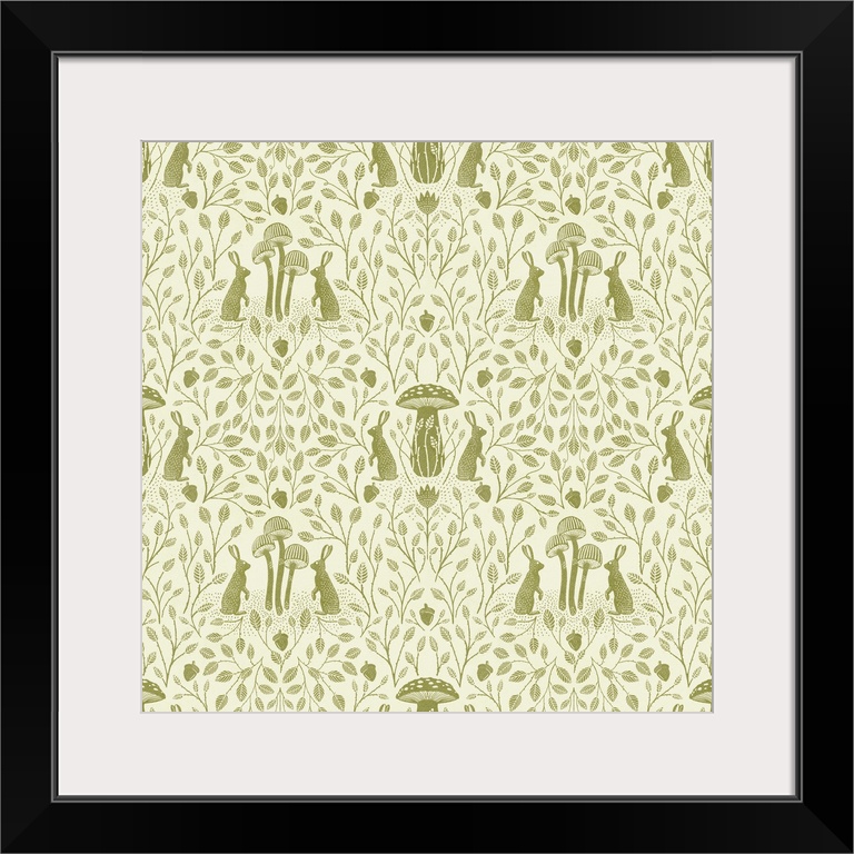 Art Decorative Art Florals Leaves Mushrooms Graphic Art Green Wall Art Katie O'Shea Patterns Wildlife Rabbit