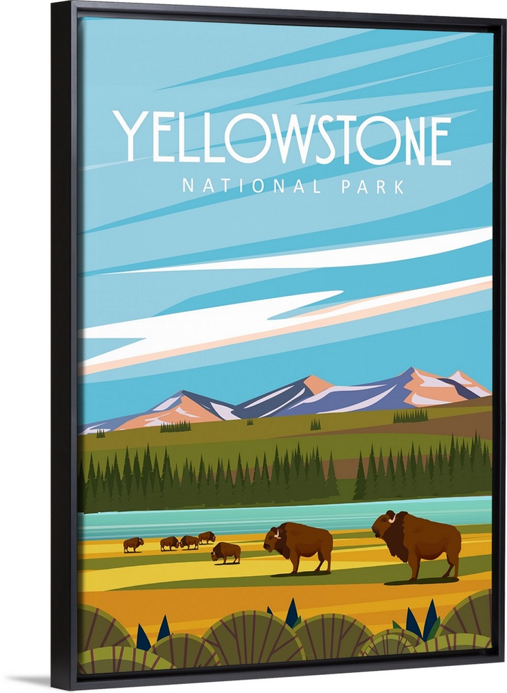 Art Blue Wall Art Decorative Art Arctic Frame Graphic Art Wyoming Yellowstone National Park Travel Posters Contemporary Travel Posters