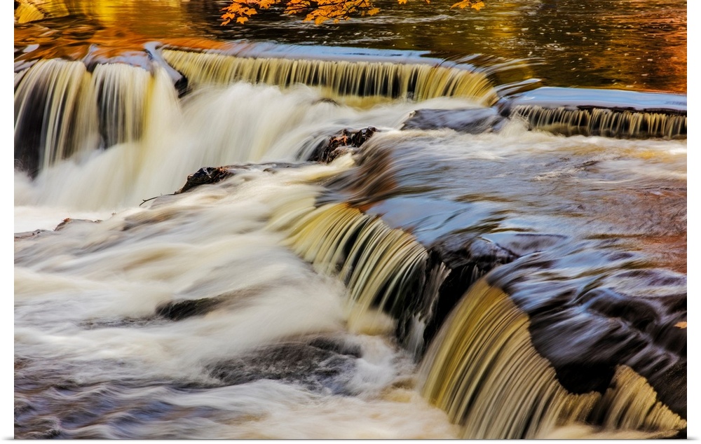 <p>Yellow and golds reflect from tree into The Middle Branch of the Ontonagon River at Bond Falls Scenic Site, Michigan USA</p>