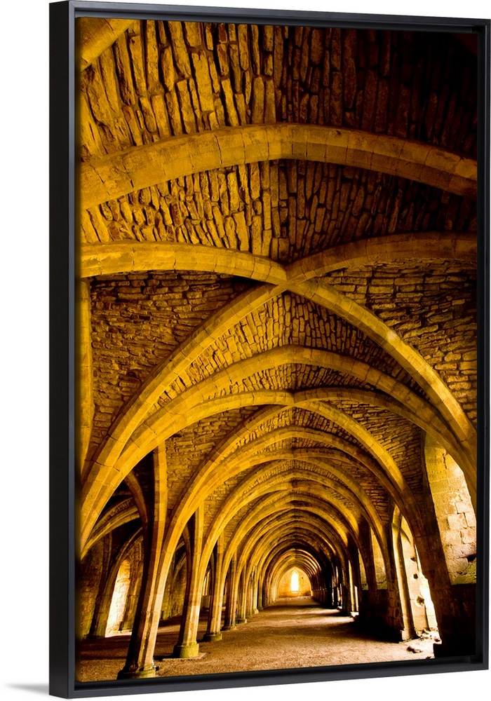 <p>A receeding passage through gothic arches.</p>