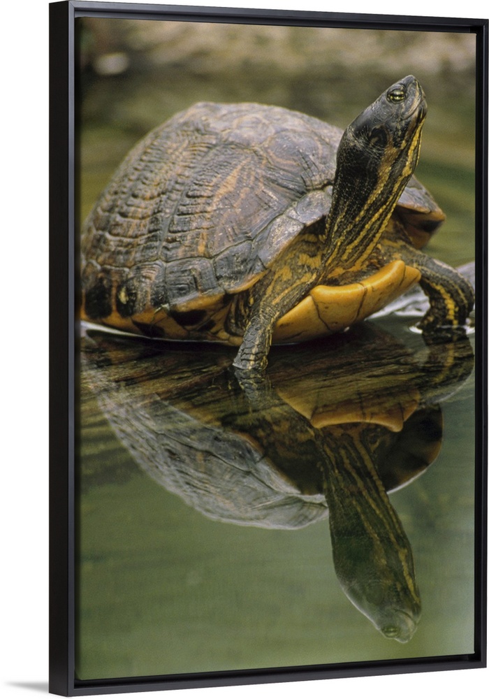 <p>Yellow-bellied Slider (Trachemys scripta scripta) turtle, portrait, in water, North America</p>