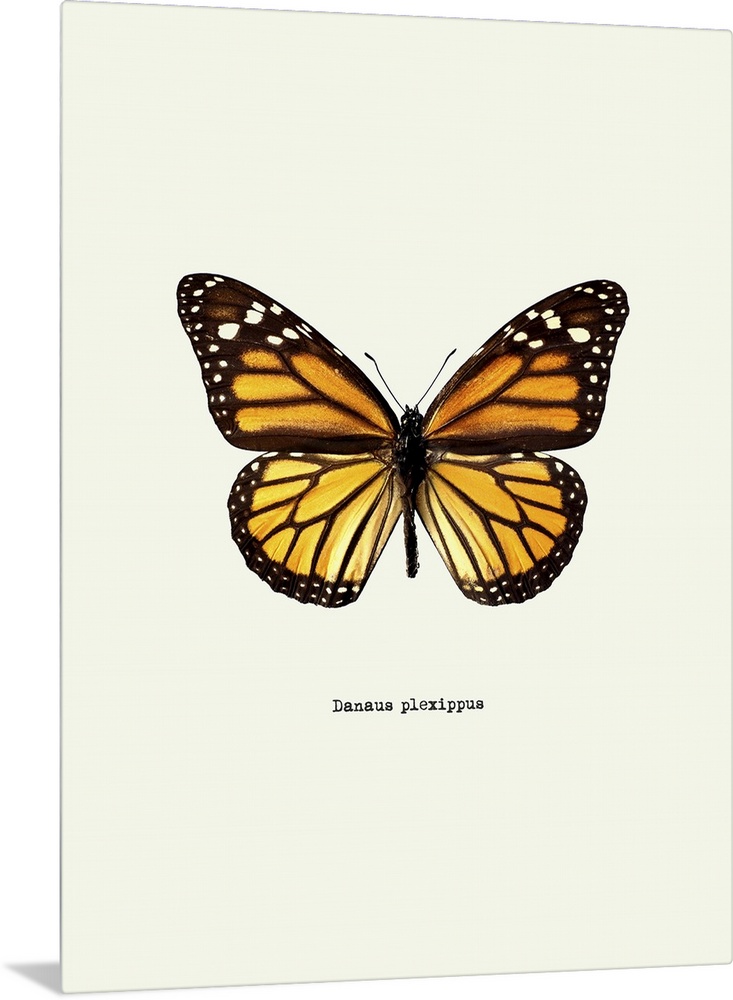 <p>Image of a yellow butterfly with the scientific name below it, Danaus Plexippus.</p>