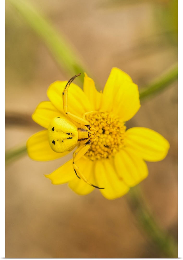 <p>Yellow Crab Spider (Thomisus callidus) on a yellow flower in Cave Creek Canyon in the Chiricahua Mountains near Portal; Arizona, United States of America.</p>