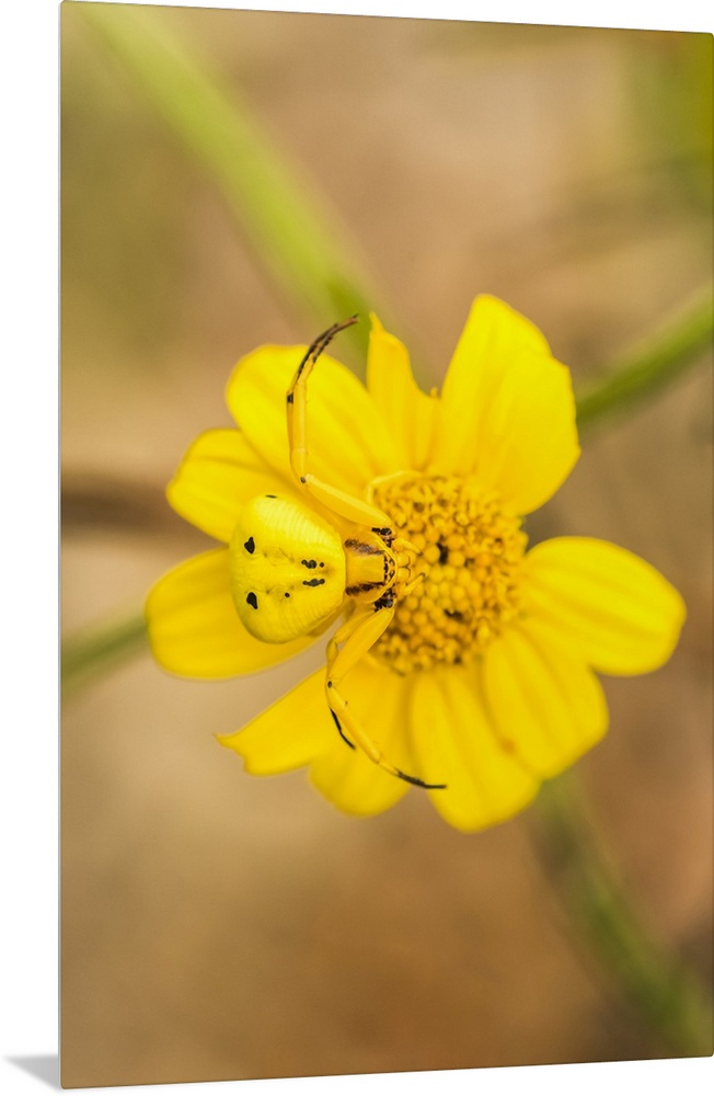 <p>Yellow Crab Spider (Thomisus callidus) on a yellow flower in Cave Creek Canyon in the Chiricahua Mountains near Portal; Arizona, United States of America.</p>