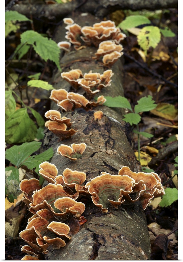 <p>Yellow curtain crust fungus (Stereum subtomentosum) on a log.</p>