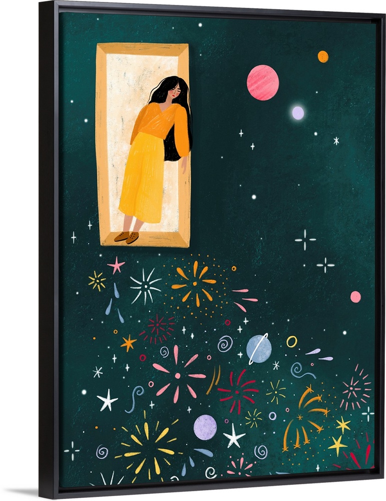 Art Winter Green Contemporary Art Graphic Art Green Wall Art Bea Muller People Pink Wall Art Space Planets and Satellites Stars