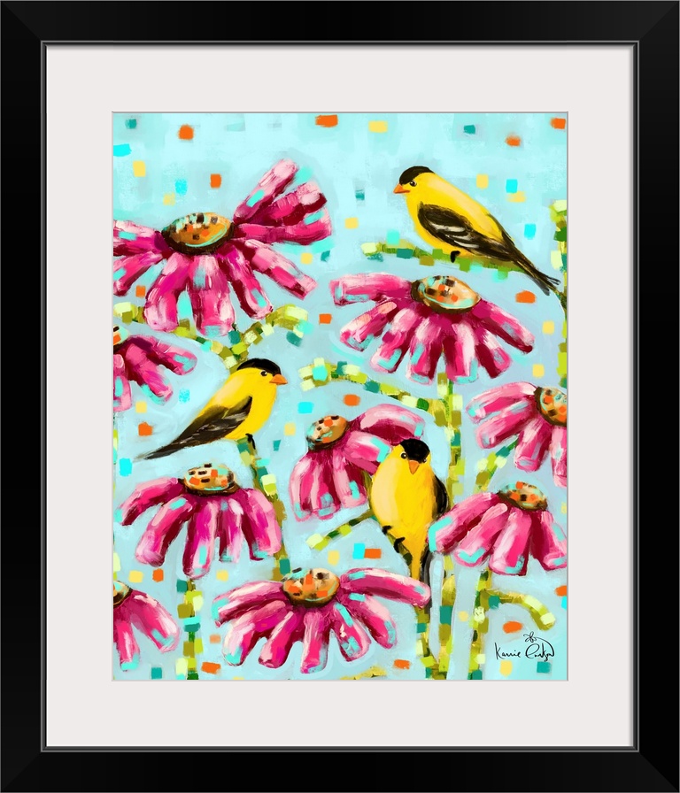 Art Contemporary Art Karrie Evenson Florals Painting Pink Wall Art Wildlife Bird