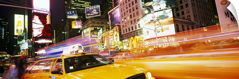 <p>Yellow taxi on the road, Times Square, Manhattan, New York City, New York State, USA</p>