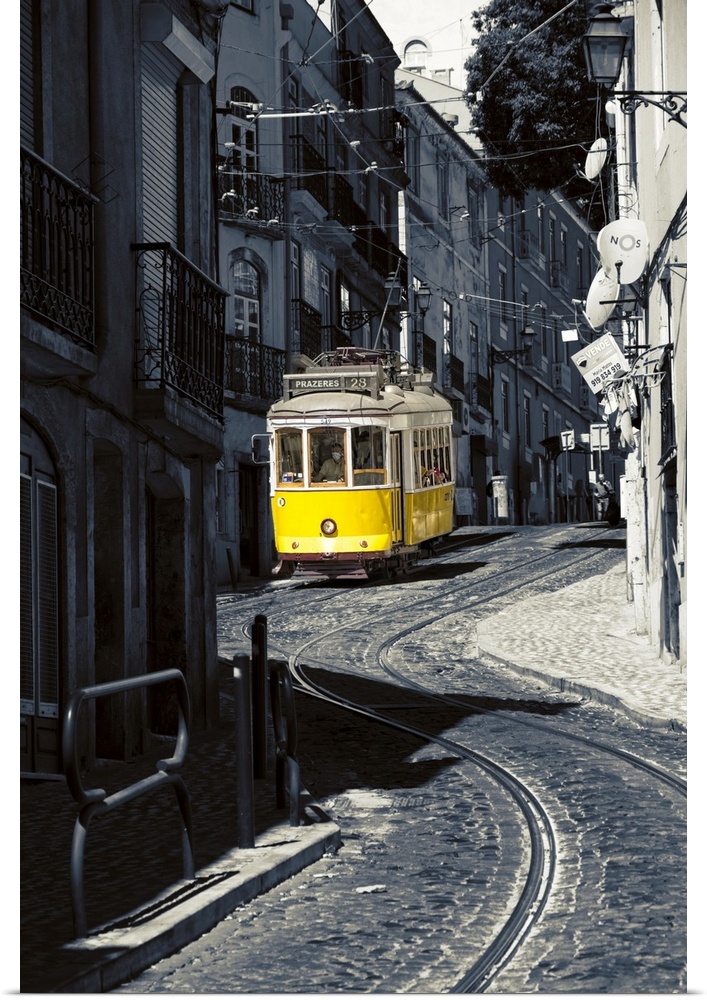 <p>Yellow Tram No. 28 in Alfama District, Lisbon, Portugal.</p>
