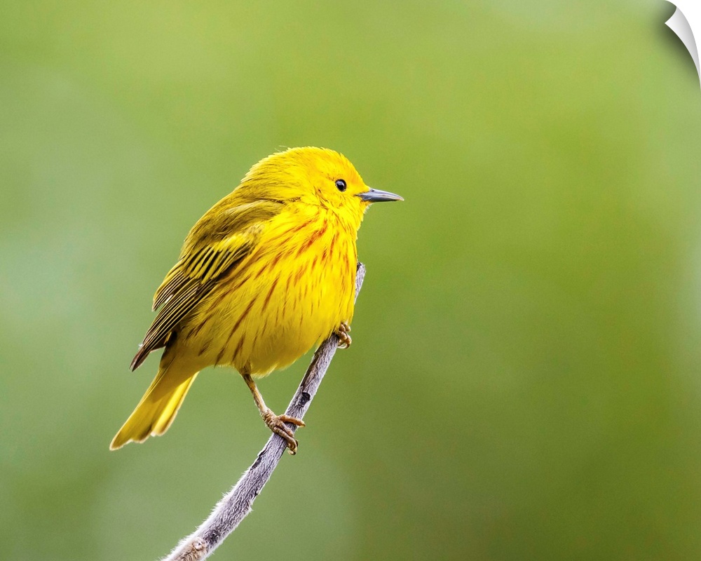 <p>Yellow warbler (Setophaga petechia) perched during spring time; Chateauguay, Quebec, Canada</p>