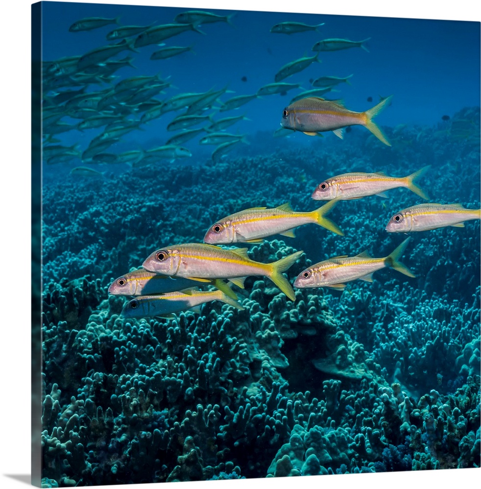 <p>Yellowfin Goatfish (Mulloidichthys vanicolensis) schooled off the Kona coast, Kona, Island of Hawaii, Hawaii, United States of America.</p>
