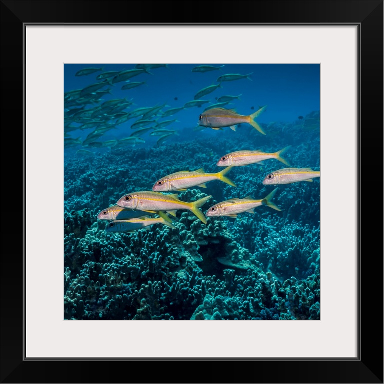 <p>Yellowfin Goatfish (Mulloidichthys vanicolensis) schooled off the Kona coast, Kona, Island of Hawaii, Hawaii, United States of America.</p>