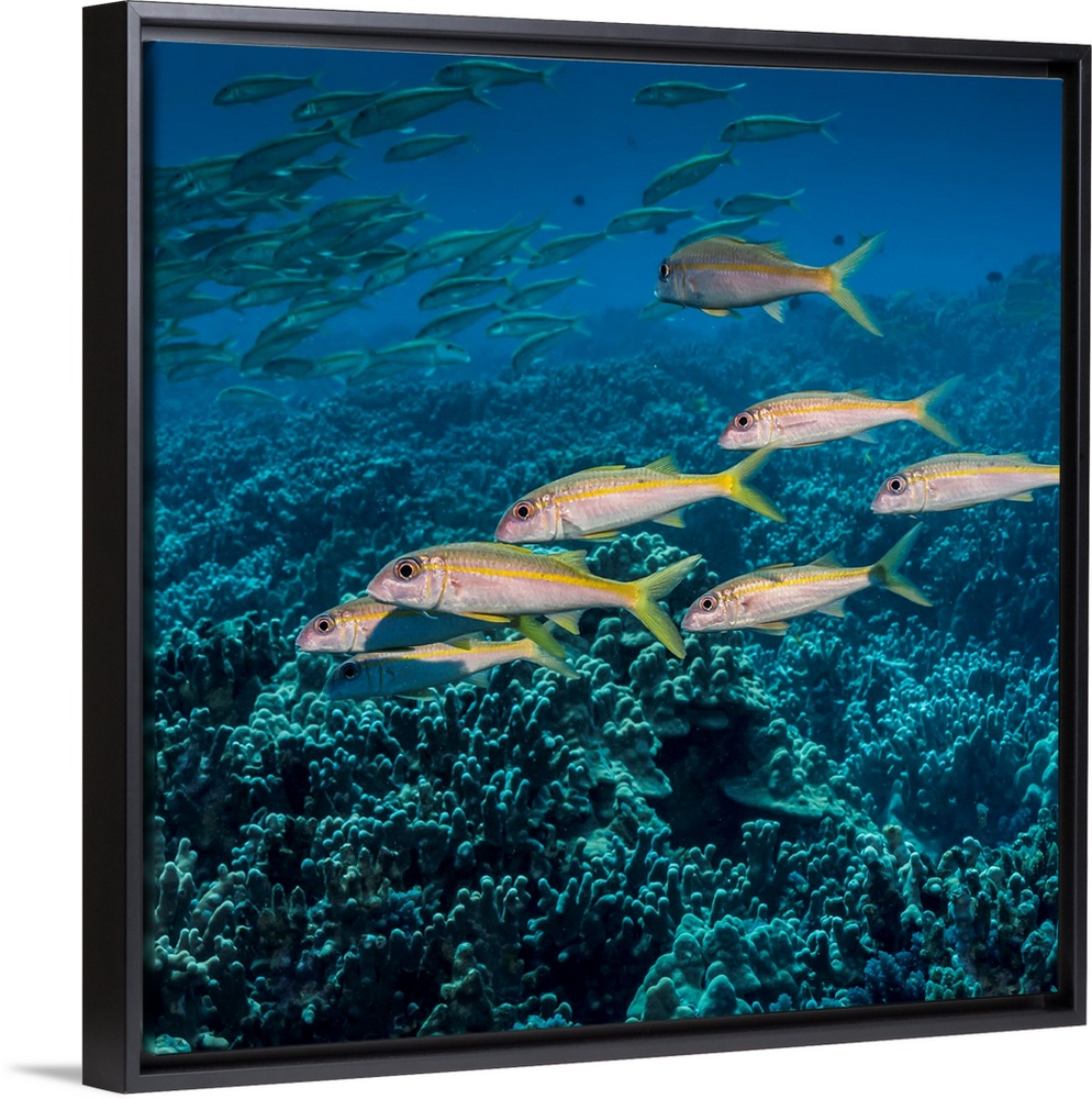 <p>Yellowfin Goatfish (Mulloidichthys vanicolensis) schooled off the Kona coast, Kona, Island of Hawaii, Hawaii, United States of America.</p>