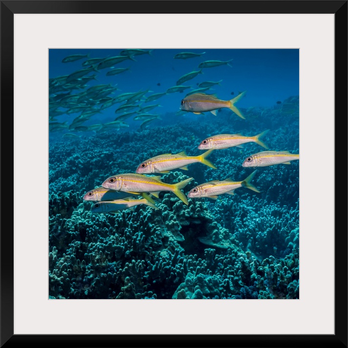 <p>Yellowfin Goatfish (Mulloidichthys vanicolensis) schooled off the Kona coast, Kona, Island of Hawaii, Hawaii, United States of America.</p>