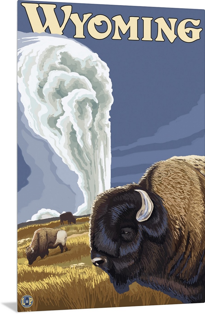 Art Lantern Press Wyoming Yellowstone National Park Travel Posters Retro Travel Posters Wildlife Bison and Buffalo