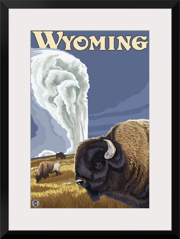 Art Lantern Press Wyoming Yellowstone National Park Travel Posters Retro Travel Posters Wildlife Bison and Buffalo