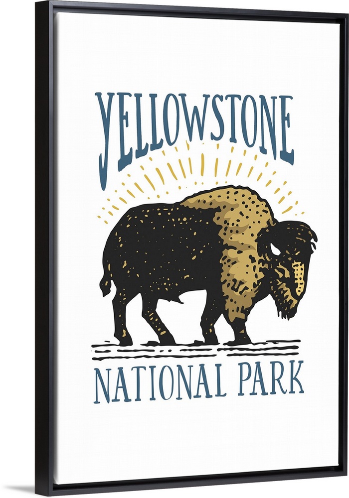 Art Lantern Press United States Wyoming Yellowstone National Park Typography & Calligraphy Wildlife Bison and Buffalo