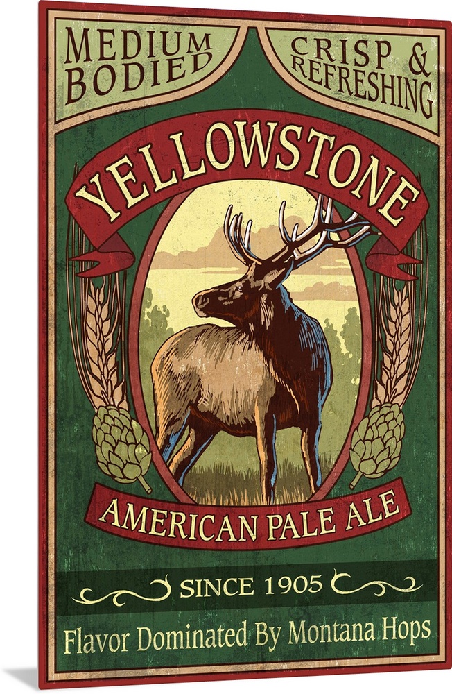 <p>Retro stylized art poster of a vintage sign with an elk advertising ale.</p>