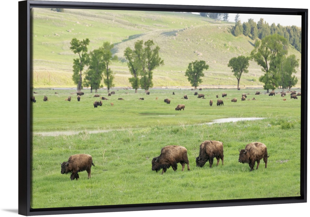 <p>Yellowstone National Park, Lamar Valley. Bison enjoying the green grass of spring.</p>