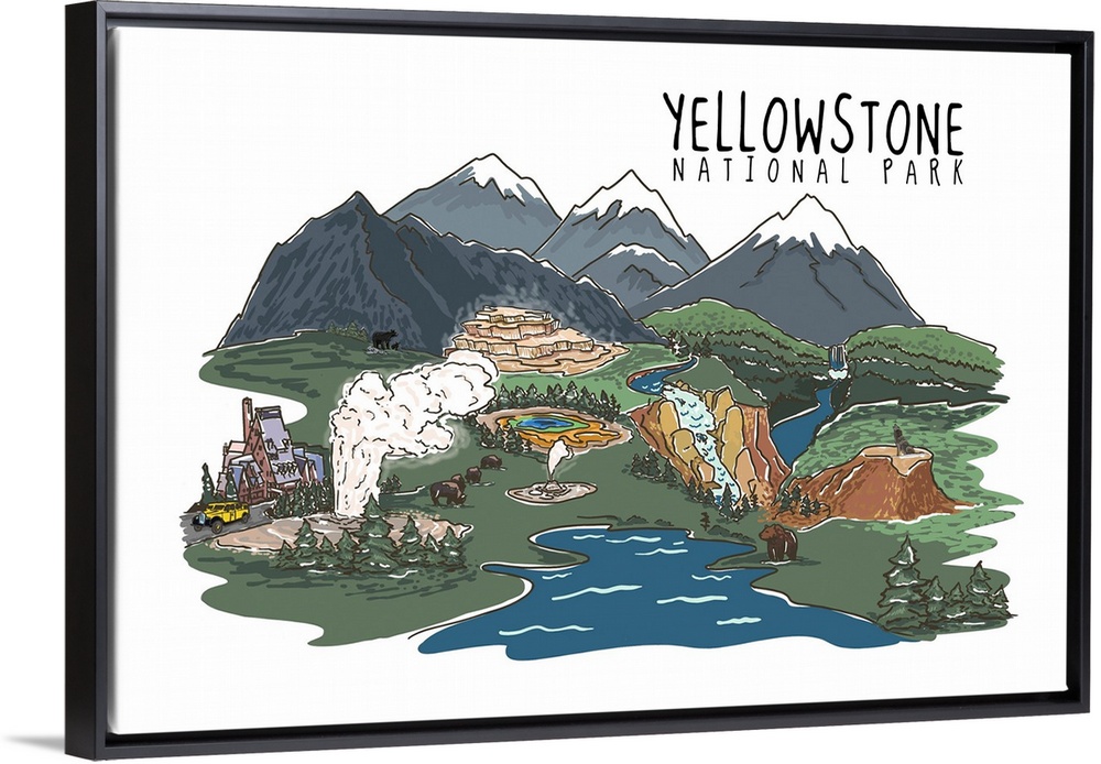 Art Mountains Lantern Press United States Montana Wyoming Yellowstone National Park Travel Posters Contemporary Travel Posters