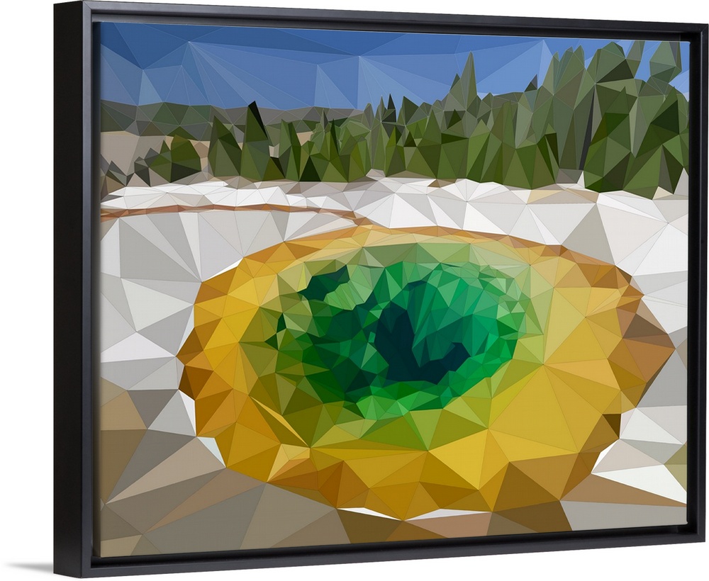 <p>A prismatic volcanic spring in Yellowstone National Park, Wyoming, rendered in a low-polygon style.</p>