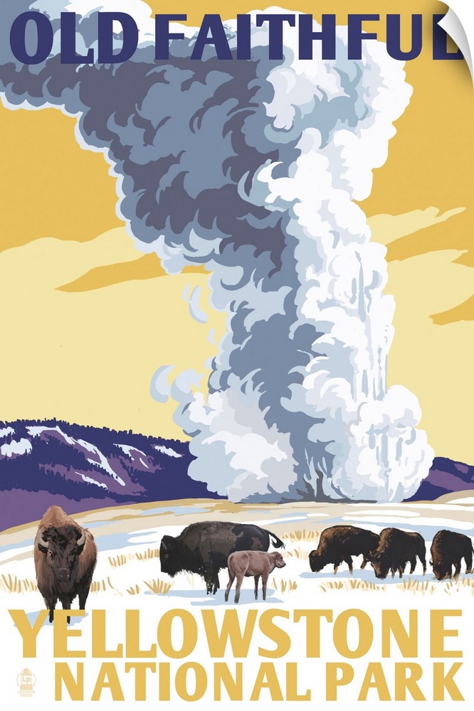 Art Landscapes Geyser Lantern Press Yellowstone National Park Bison and Buffalo