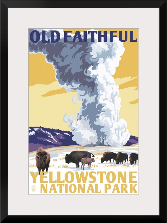 Art Landscapes Geyser Lantern Press Yellowstone National Park Bison and Buffalo