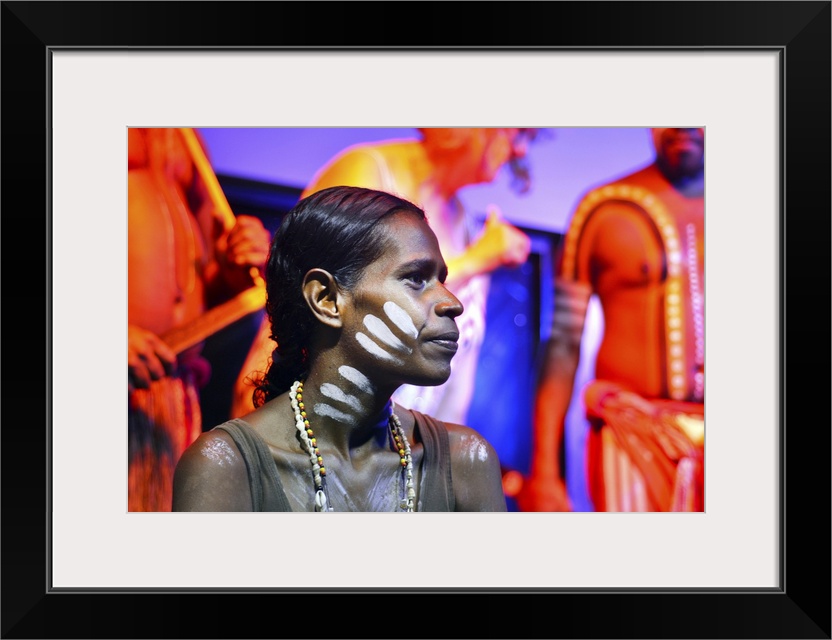 <p>Yirrganydji Aboriginal woman and men during cultural show in Queensland, Australia.</p>