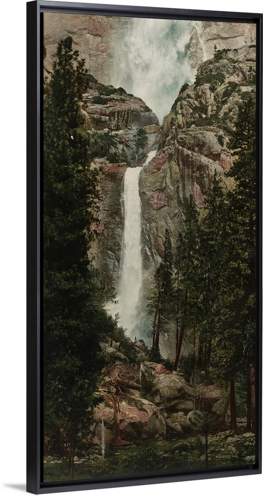 <p>Hand colored photograph of Yosemite falls, California.</p>