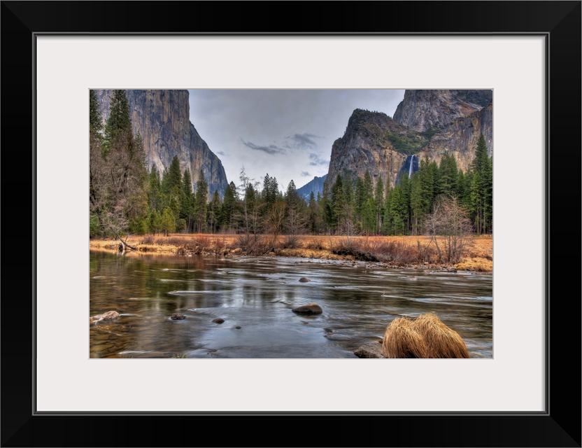 <p>Valley floor shot of the Merced River, El Capitan and Bridalveil Fall.</p>