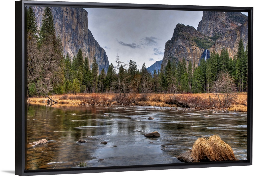 <p>Valley floor shot of the Merced River, El Capitan and Bridalveil Fall.</p>