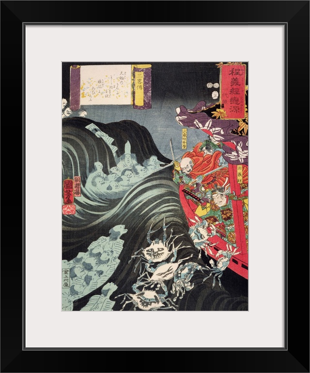 <p>Yoshitsune, with Benkei and Other Retainers in their Ship Beset by the Ghosts of Taira, 1853 (woodblock print) by Kuniyoshi, Utagawa (1798-1861) Fitzwilliam Museum, University of Cambridge, UK; Japanese</p>