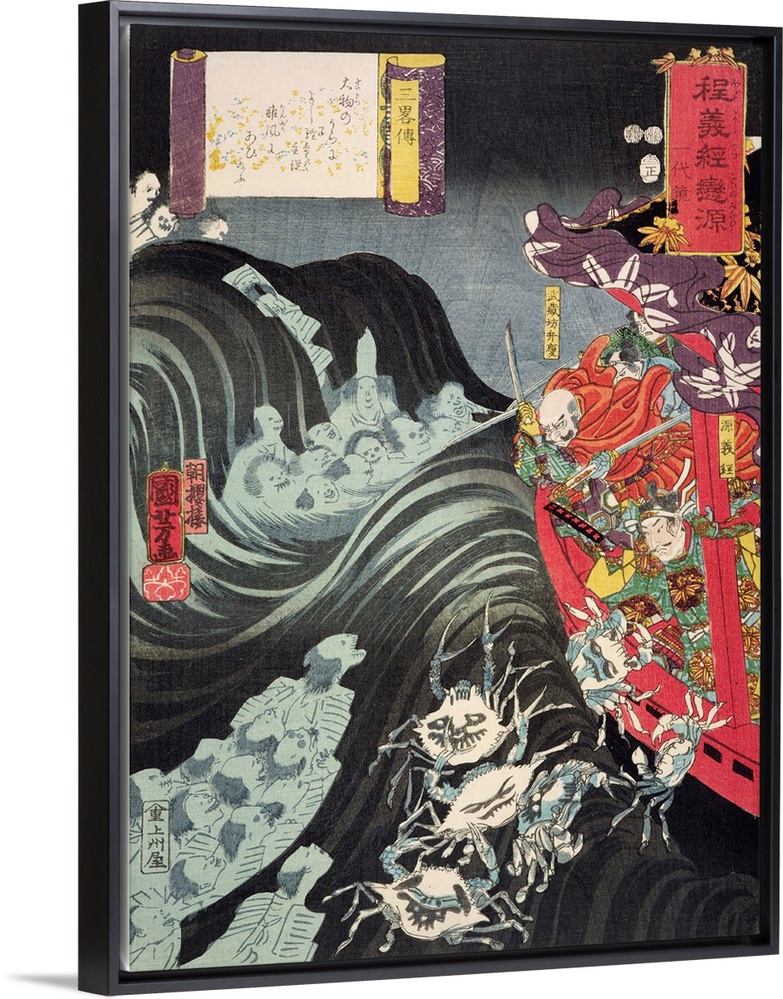 <p>Yoshitsune, with Benkei and Other Retainers in their Ship Beset by the Ghosts of Taira, 1853 (woodblock print) by Kuniyoshi, Utagawa (1798-1861) Fitzwilliam Museum, University of Cambridge, UK; Japanese</p>