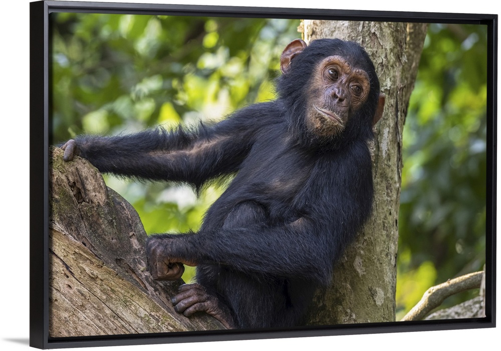 <p>Young chimpanzee (pan troglodytes) resting in a tree in Mahale mountains national park on the shore of lake Tanganika, Tanzania.</p>