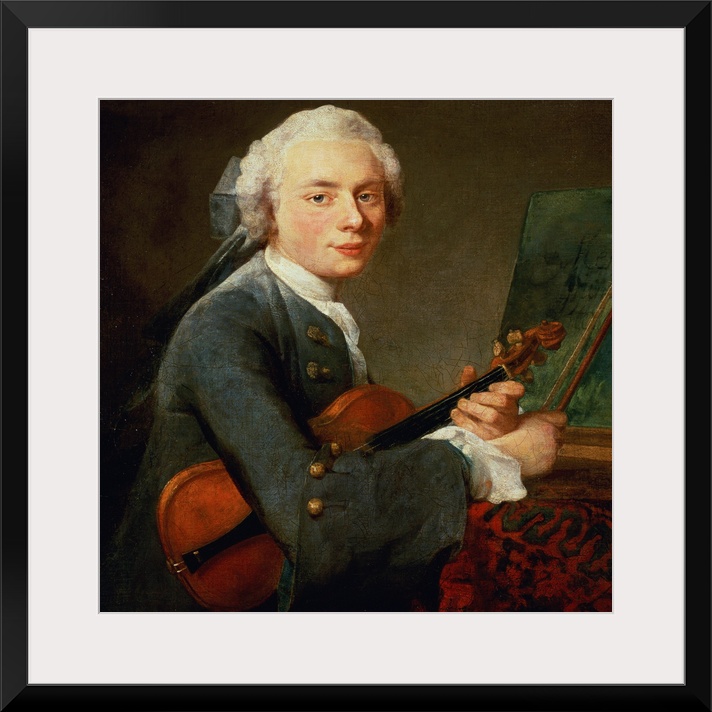 <p>XIR89753 Young Man with a Violin, or Portrait of Charles Theodose Godefroy (1718-96) c.1738 (oil on canvas); by Chardin, Jean-Baptiste Simeon (1699-1779); 67.5x74.5 cm; Louvre, Paris, France; Lauros / Giraudon; French, out of copyright</p>