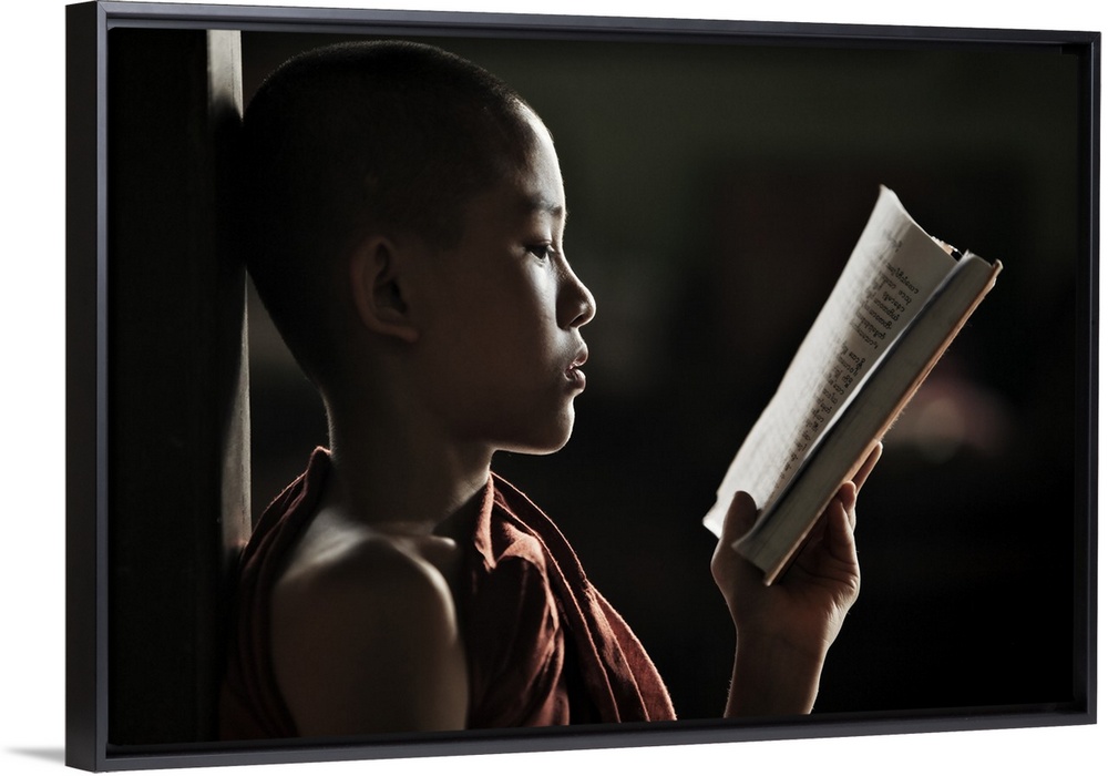 <p>Young monk reading in his monastery, Bagan, Burma</p>