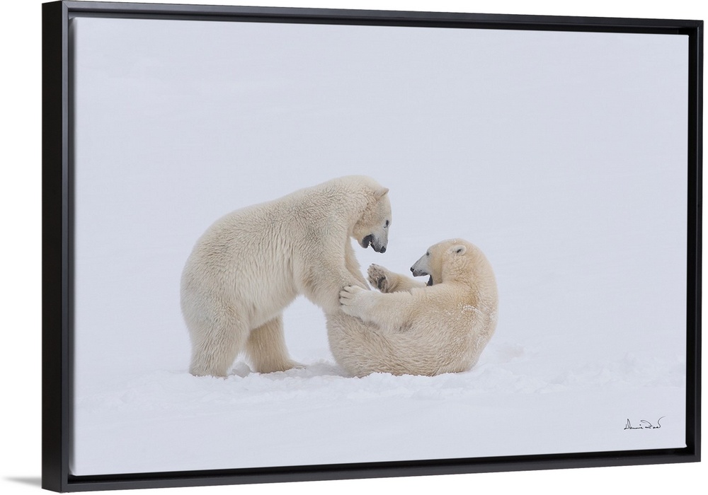 <p>Polar Bears (Ursa maritimus) play wrestling and tumbling on sub-Arctic Hudson Bay ice and snow, Churchill, MB, Canada</p>