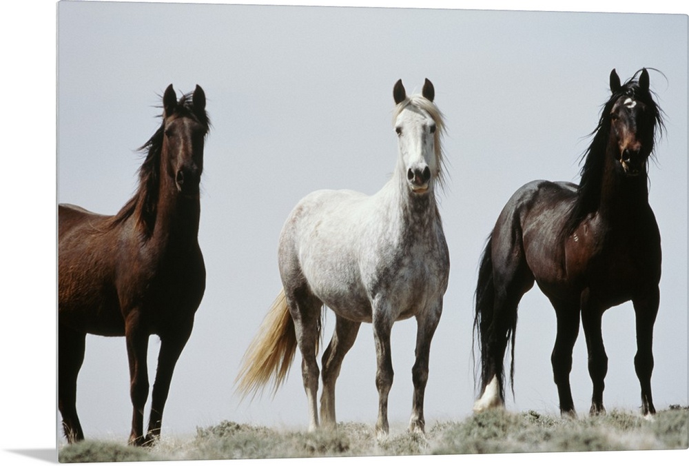 <p>Wyoming, Young wild stallions at head of Alkali Creek near Cyclone Rim, near Continental Divide.</p>