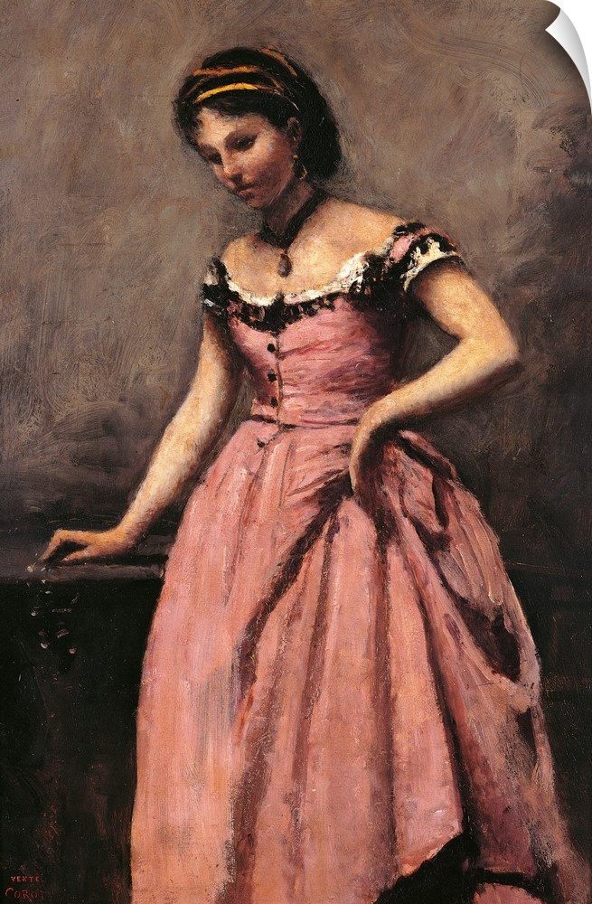 <p>Young Woman in a Pink Dress, by Jean-Baptiste-Camille Corot, 19th Century, oil on canvas, cm 46 x 32 - France, Ile de France, Paris, Muse dOrsay. All. Young woman in a pink dress necklace. (273034) Everett Collection\Mondadori Portfolio</p>