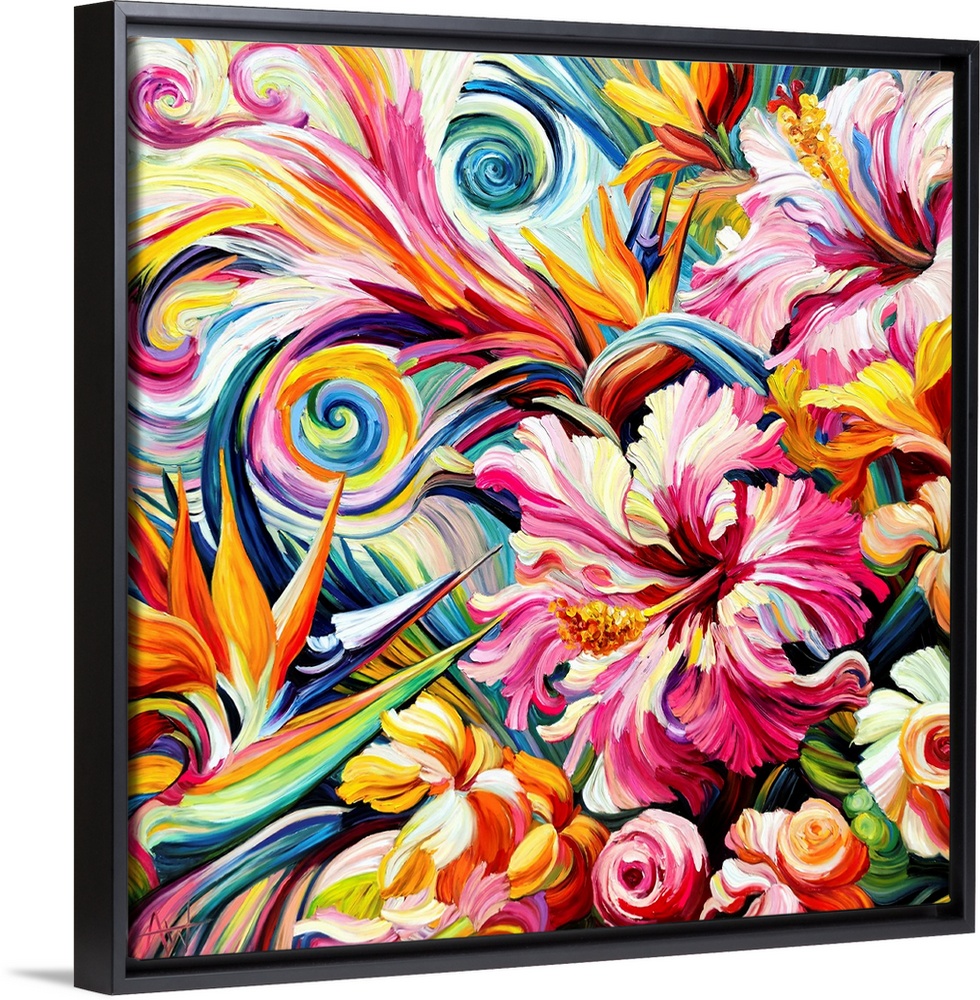 Art Maximalism Contemporary Art Florals Tropical Flowers Multicolor Wall Art Painting Angie Wright