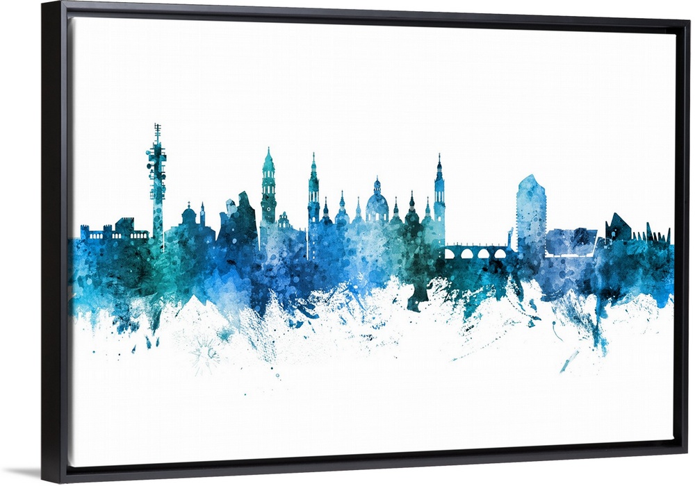 <p>Watercolor art print of the skyline of Zaragoza, Spain</p>