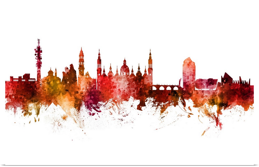 <p>Watercolor art print of the skyline of Zaragoza, Spain</p>