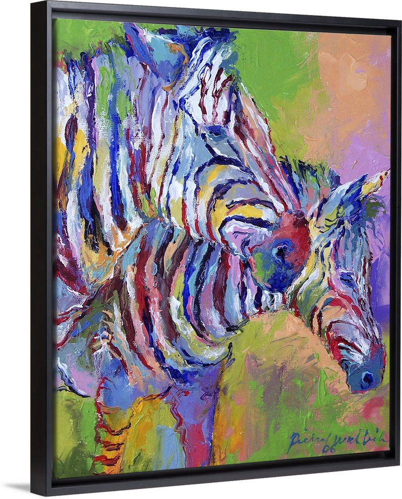 <p>Contemporary vibrant colorful painting of two zebras.</p>