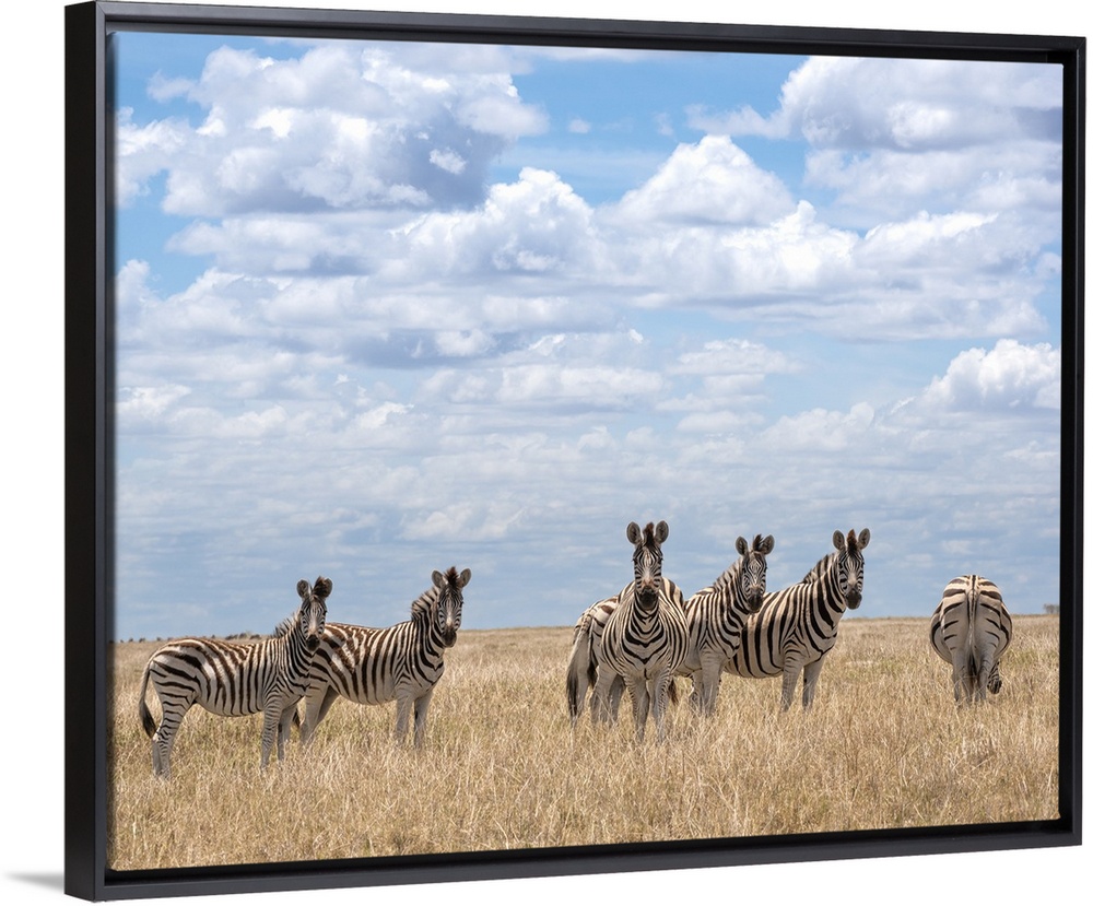 <p>Zebra herd in the long dry summer grass at Makgadikgadi Pans.</p>