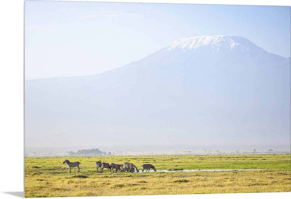 <p>Zebra with Mount Kilimanjaro, Amboseli National Park, Kenya</p>